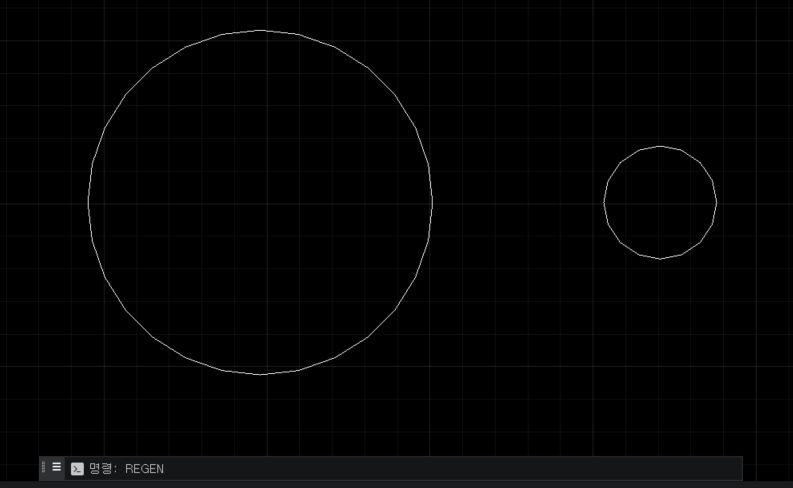 2) REGEN 명령어를 입력 후 도형을 확인해 보시면 위와 같이 매끄럽게 출력된 원형을 확인할 수 있습니다.